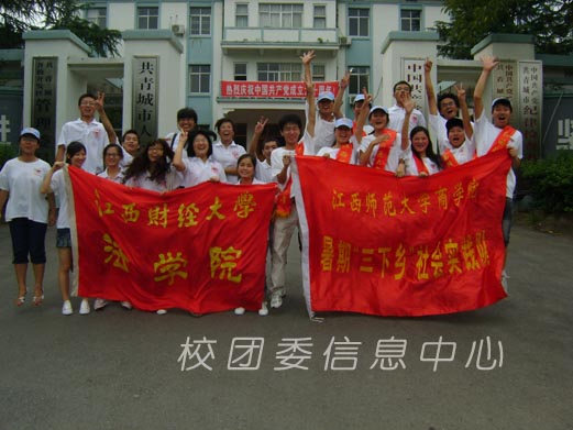 奉献无远近,千里觅知音。7月4日下午,我校商学院实践队时巧遇江西财经大学法学院“三下乡”社会实践队,与之一同开展志愿服务活动。 当日,商学院社会实践队正在共青城政府广场开展系列宣传活动。一位细心的实践队员在分发传单时,发现身旁有位白衬衫上注有“江西财经大学实践队”的青年,询问之下得知,江西财大法学院恰好也在共青城开展“三下乡”社会实践活动。惊喜之余,两校同学们相互询问相关活动安排,交流实践经验,并在分别时合影留念。商学院一队员感慨道:“千里觅知音,奉献大家行。”两位队长都表示,两队应找机会再次开展合作活动。 此次美丽的邂逅为实践队员增添了一份惊喜与感动,这也让队员们更加坚定了立足实践,服务社会的信念,肩负起做一名当代大学生的社会责任。(文/商学院)