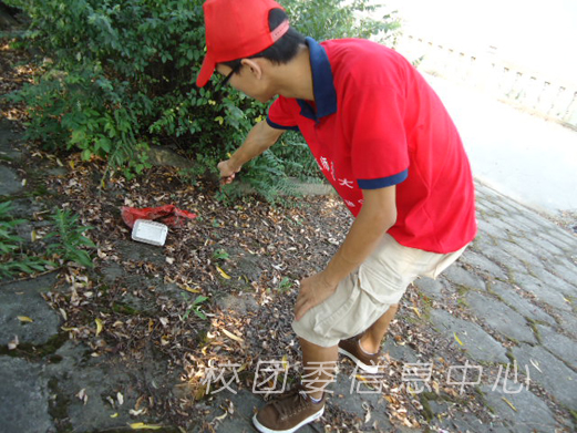 一大早,队员们就拿着扫帚、垃圾铲、火钳等工具,集体前往岑岗河堤。到达目的地后,大家分工合作,在河堤人行道及两边的绿化带上清理废弃物,随后还在河床边对垃圾进行了分类处理。虽然天气炎热,但同学们还是在两个小时的努力后,将横峰母亲河打扫得干干净净。