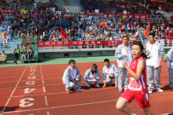 11日上午10点23分,女子甲组(非专业组)3000米开始比赛。发令枪一响,运动健儿们便一骑绝尘,呼啸而去。在众多参赛的运动员中,有一个人吸引了大家的眼球,博得了众多掌声——她就是化学化工学院的叶采晴。只见叶采晴略显单薄的背影,在比赛一开始时就超越了前面的选手。随后,一路领先,始终保持着第一的优势,将其他选手远远地甩在了后面。在第六圈的时候,叶采晴已经超过其他选手将近200米的距离。此时,接近正午的太阳显得格外的燥热与疯狂,晒得观看比赛的人们都汗流不止。比赛中的选手们却是丝毫没有退缩与放弃的模样,3000米,对于她们来说或许是个挑战,但她们却依旧顶着烈日,为着梦想,坚持着,只求超越自我、超越梦想。最终,叶采晴以13分20秒的成绩夺得了这一项目的冠军。