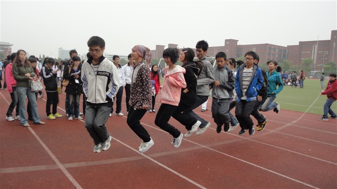 “预备……跳”。似一条彩带在空中飞舞,如一条弧线在空中划过,这就是教育学院集体跳绳的同学们的训练剪影。
