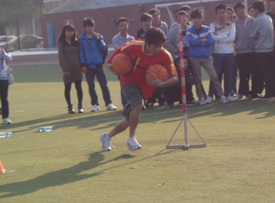 11月1日,江西师大第四十九届校运会拉开帷幕。下午两点半,我校C场集结了许多人,每个人脸上都呈现出紧张、兴奋地表情。很快,这里举行了持球接力、踢毽子、个人铅球三个项目的比赛。而这三项比赛中也都有政法学院的参与。