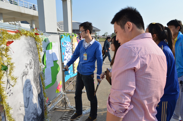 评分采取去掉最高分和最低分,选用平均分的原则,力求减少了评审过程中的主观因素。打分采取实名制原则,并且在打分过程中由校学生会工作人员全程监督,以防评分员在评审过程中交流。打分结束后,将打分条放入事先准备的密封袋中。记者随行评分组成员,发现整个过程中,评审小组的工作人员认真负责,看、听、问,严格按照评审细则打分。
