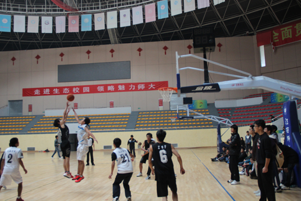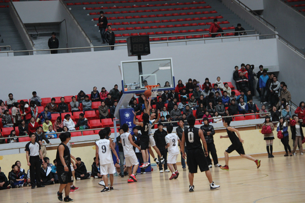 如果用火一般的气势形容软件学院的场上攻势,那文旅学院的防守便是坚冰般的稳固。比赛开场,软件学院以压倒全场的气魄连夺9分。周密的配合,精准的投篮,不容喘息的进攻,无不展现出卫冕王牌的霸气。与此同时,文旅学院的队友们也严密防守,紧咬比分。在一次暂停调整后,文旅投出了本场比赛首球,以一个完美的三分球结束第一节的比赛。第二节比赛在现场中观众的欢呼声中继续精彩开锣。软件学院队员勇往直前,把握时机,多次篮下抢断球。文旅学院紧追不让,把握对方多次犯规和失误的机会,连追4分。接下来的两节比赛,双方因体力消耗过大失误都不同程度地增加,比较进入胶着化状态。软件学院凭借自身比分优势一路遥遥领先,并以几次完美的长传,一度控制全场赛事。其团队精湛的球技引来现场观众的阵阵惊叹声。