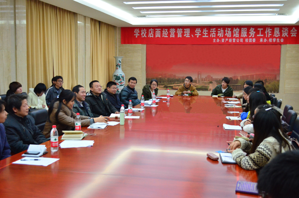 为进一步贯彻落实我校“以人为本,全面发展”的理念,更好得服务同学,在校领导的关心支持下,由资产经营公司、校团委主办,校学生会承办的学校店面经营管理、学生场馆服务工作恳谈会于12月11号下午3点在先骕楼第一会议室召开。