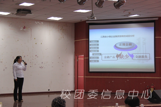 在主持人对答辩会各项规则作了详细介绍后,活动正式开始。第一组团队的作品是《信用共同体“贷”动小微企业创富梦―江西省小微企业融资困境调查报表》。团队作品主讲人详细地介绍了研究此课题的原因,小微企业所面临的困境及解决的方案,还提出了信用共同体的概念。在专家提问环节,评委老师严格地对选手的课题内容提出苛刻的问题。选手们则根据老师的提问一一回应,作出详实解释。《“金溪现象”:中部县域经济崛起的探索―江西金溪县香料香精产业集群调查报告》是第三组队员的研究课题,由于临时更换了演讲队员,导致没能在规定时间阐述完学术报告,而且在提问环节没能就老师的问题作出有力的回答,评委老师在表示理解的同时也提出了批评和改正意见。最后一组的课题名称为《新型油污吸附材料―超轻弹性碳泡沫》,超轻弹性碳泡沫是由化学化工学院项目团队研究的成果,产品对于吸收油污具有强大的作用。在发言环节,评委老师对此研究项目寄予厚望。