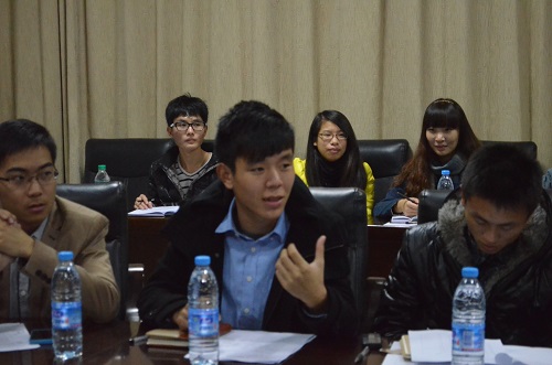 校学生会主席团主席曹光景同学对秦书记所强调的“高度重视青年学生的体质锻炼”发表了自己的看法,曹光景同学讲到,团学工作需要健康身体的支持,学生干部要增强体质、鼓励锻炼,既要“强魂”,又要“健体”,用健康的体魄为团组织奉献自己的力量。校学生会主席团主席吴嘉禾同学则从“青年人的改革创新意识”出发,重点谈到了学生会各项工作的改革创新工作。传播学院学生分会负责人刘文浩同学以秦书记所讲的“高校团组织运用新媒体开展工作”为切入点,结合学院专业优势,阐述了新媒体对于团属舆论宣传工作的重要性,并认为团组织的舆论宣传工作要把握政治性、保持主动性、体现服务性,要注重发挥服务青年和引导青年的作用。与会人员轮流发言,对秦书记的讲话进行了充分的解读,一致表示秦书记的讲话具有现实意义,对自己未来的学习、工作和生活具有指导意义。 校学生会组织主要学生干部学习秦书记在江西调研共青团工作时的讲话主要目的在于提升我校主要学生干部的思想政治水平,促进新学生会未来各项工作的改革创新,使得学生会能够用更好的为广大同学服务,发挥在广大同学之中的思想引领作用。与会人员表示通过通过学习秦书记的讲话,使大家对于团学工作将来的发展方向有了更加深刻的理解和认识,与会人员纷纷表示,将把秦书记的讲话的精神作为自己今后一段时间开展工作的准则,切实把相关要求在工作中落实下去,保障团学工作又好又快的发展。 (文/图 校学生会宣传部 吴俊宇)