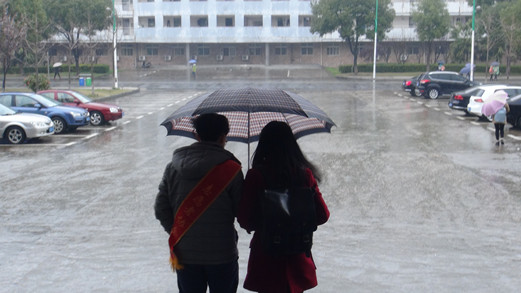 在服务过程中,各位青年志愿者未因绵绵细雨而推却义务责任,反而通过相互协作有条不紊地开展着服务工作。天一直灰着,雨也在一直下,但青年志愿者们却在各种鲜亮色彩的雨伞下传递着微笑,没有一丝一毫的抱怨,只是默默奉献着。在雨中,青年志愿者们打着伞接送着那些淋雨的同学,这行动虽小,但却温暖了很多人的心,可谓是雪中送炭。