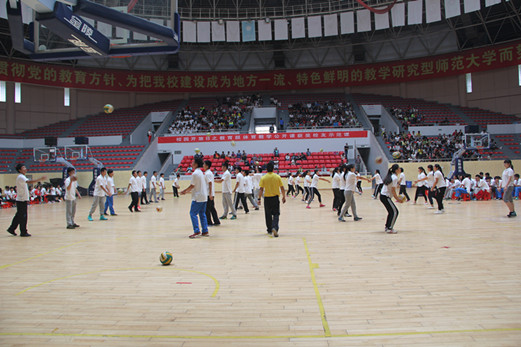 5月17日上午校园开放日之教育部体育教学公开课获奖校友示范课在我校瑶湖体育馆顺利举行。此次公开课体育学院很荣幸的邀请了6所实习学校的领导莅临现场,同时该院党委书记付小玲、党委副书记肖勇、团委书记邱祖建以及该院全体师生出席此次活动。此次活动主要由三名老师为大家展示三节不同特色的公开课。