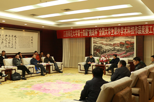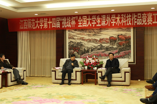 对于顺利结束的第十四届全国“挑战杯”大赛,田延光表示,此次大赛刷新了我校科技发明类作品成绩的历史,体现了我校学子的爱校情怀、综合素质,也展示出我校教学质量正在上升,这得益于学校的高度重视,有关部门和单位的大力支持,老师爱生如子的精心指导以及同学们的勤奋努力。据此,他提出三点建议:一是更加重视人才培养,以学为中心,总结经验,继续深化教育改革;二是希望师生发挥示范作用,引导其他学院的领导和老师重视挑战杯竞赛活动;三是要大力推进教育创业、创新常态化,培养学生综合素质,提高整体教学质量。随后,梅国平对参赛选手们的成长和进步也表示了祝贺,赞扬他们展现了师大学子风采,表彰了老师们的辛勤工作,并表示学校将继续加大对学术科技研究的支持力度。