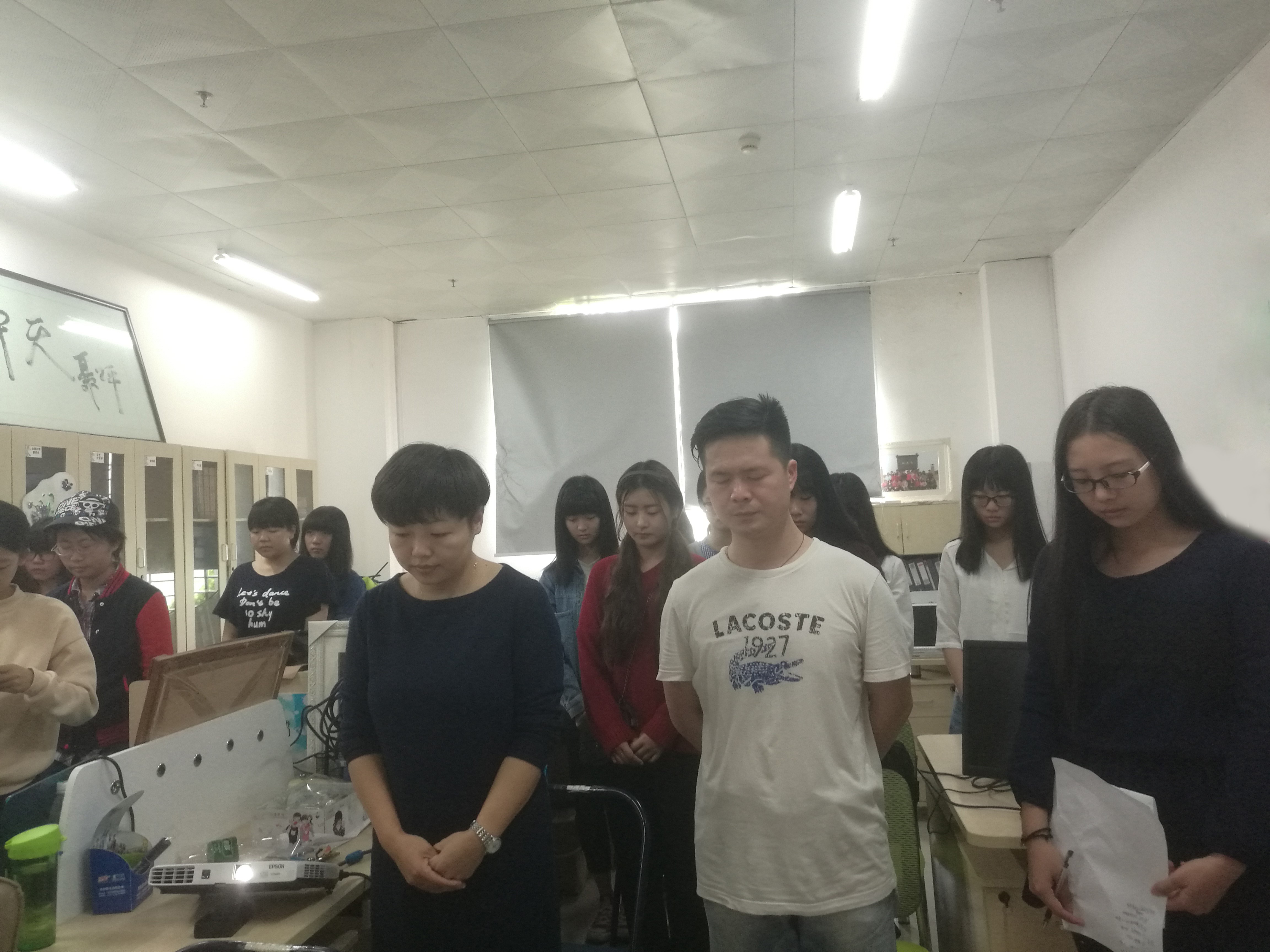 随后,习总书记从几个方面提出了长征精神的意义:首先,长征是理想信念的伟大远征,滚滚金沙江,奔流大渡河,高耸大雪山,贫瘠黑草地。红军将士跨越了四百余条河流,翻越了四十余座高山。习总书记带我们一起回顾了风雨如磐长征史,并对长征途中牺牲的长征战士表示的深切悼念,随着场中“全场起立”的口号,在场老师与学生会学干同时起立默哀,全场气氛凝重。