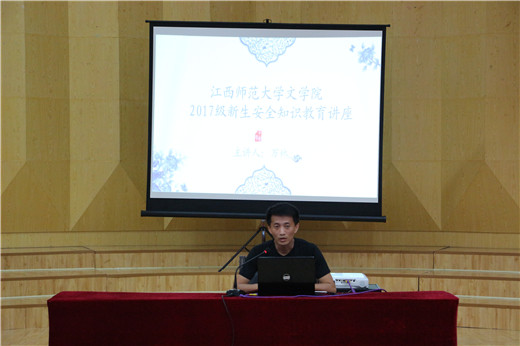 为加强新生安全教育,提高其安全意识和能力,9月21日晚上,文学院在音乐艺术广场举办了2017级新生安全教育专题讲座。本次讲座邀请保卫处治安科科长万林主讲,由2017级辅导员唐智贤主持。