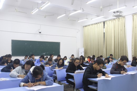 团课考试意义重大,关系到同学们综合测评中的分数,所以同学们也给予了足够的重视。考试开始前,不少同学提前到达了考场,并且认真地复习团课资料。监考人员准时到场,指导同学们按学号顺序在考场中找到自己的座位。接着,考试开始,同学们自觉将手机及有关资料收好,监考人员分发试卷。拿到试卷后,同学们都仔细答题,专注于自己的试卷,没有人交头接耳,考场中十分安静。许多同学复习充分,很快便将试卷写得满满当当。考生们营造了一个良好的考试环境,到了可以上交试卷的时候,答卷完成的同学安静快速地将试卷交给监考人员,整理好自己的物品离开考场。考试结束,监考人员收齐试卷,有序离开。