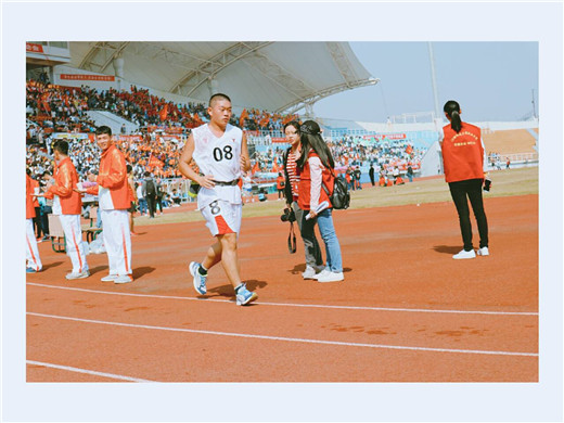 2017年11月9日上午,江西师范大学校运动会男子组10000米预决赛于瑶湖体育场开展。本次比赛共由来自不同学院的18名男子代表参加,分为2组,同时进行比赛。其中来自外国语学院的李言鹏同学代表该院出战男子组10000米预决赛,外国语学院看台上的各位同学可谓是热情似火,使劲为李言鹏同学加油助威。