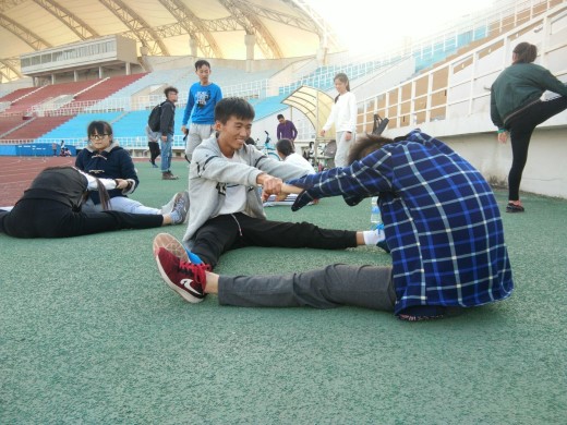 下午,运动员们的训练正式开始。如往常一样,接力赛、铅球、跳远、长跑、短跑等项目纷纷开始,运动员在教练的带领下训练,纠正姿势,不断磨合着。随后,网宣部的同学们对几位中途休息的运动员进行了采访,据了解这样的训练每天都有,目的是为了让运动员在运动会上有一个好的状态,能更好的完成比赛,争取在运动会中取得优异成绩。除此之外,积极指导的老师和后勤负责的同学都为此次运动会准备着。训练结束,此次采访也结束了。