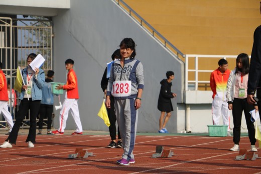 11月9日上午,教工女子组100米预决赛的比赛准时在瑶湖体育场上举行。比赛开始前,各位老师们都积极地做着赛前准备活动。谁能想到,放下课本,走下讲台,穿上一身运动装为运动会比赛做准备的老师们也可以这么活力四射,激情满怀。比赛开始。随着一声枪声响起,每位老师都以标准的起跑姿势冲出了起点。虽然她们的步伐没有运动员们那么稳健,但这并不影响她们跑起步时的美丽风采。老师们之间的比赛也异常火热,你追我赶十分焦灼。比赛过程中,来自化学化工学院的两位老师在各自的小组表现优异,紧跟对手的步伐及节奏,并准确找到合适的时机反超并保持住自己领先的优势。最后,两位老师均取得优异的成绩,陈菲老师更是在此次比赛中拔得头筹,获得第一名。