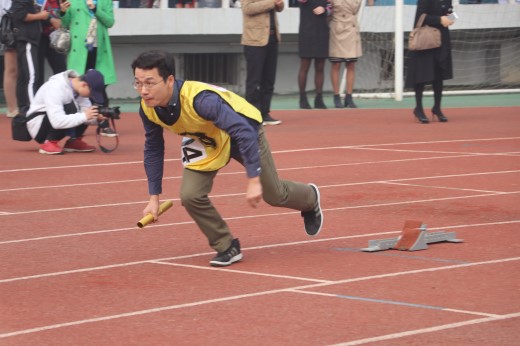 11月8日上午,在隆重精彩的开幕式结束后,紧接着的就是激动人心的比赛时刻了。最先开赛的是教职工4×100接力预赛,美术学院的老师们怀揣着满满的希望与热情陆续入场,在工作人员的引导下站在了指定的赛道上。赛前,老师开始做准备活动,压腿、扩胸,一招一式都尽显专业。比赛开始,现场气氛变得紧绷,只见发令员缓缓走上发令台,举起发令枪,"各就各位,预备。"只听见一声"嘭"的枪响,所有老师如火箭般冲了出去,他们紧握接力棒,节奏紧凑,步伐矫健,气势如洪,在所有人的呐喊声中,最后一棒的老师突破终点,观众台上一片欢呼声响起。老师们尽自己的能力,为美术学院争得了荣誉。