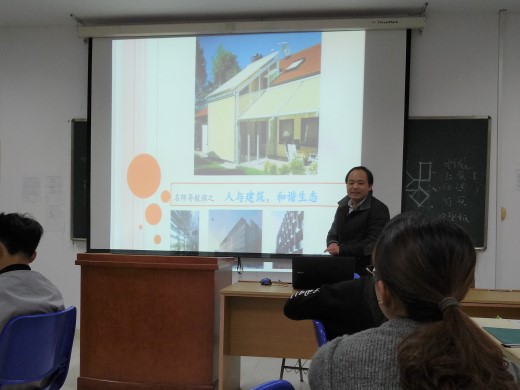 此次名师导航课的专题名称为“人与自然,和谐生态”。郑侃老师首先向同学们讲述了自然环境与建筑环境的关系,教导在座同学要注重自然环境与建筑环境的和谐共处,将生态理念贯穿学习及设计过程中。其次,郑侃老师通过解析中式建筑,向同学们说明了建筑的建造设计要与当地的自然环境相符合,因地制宜,这正好是人与自然和谐共存的又一实证。最后郑侃老师向同学们讲述了中国的病态建筑,表明了建筑产生能耗在中国总能耗中的所占比重过大,这与“人与自然,和谐生态”的主题是相违背的,并寄愿同学们能在今后的工作学习中贯彻建筑与自然和谐共处的理念。