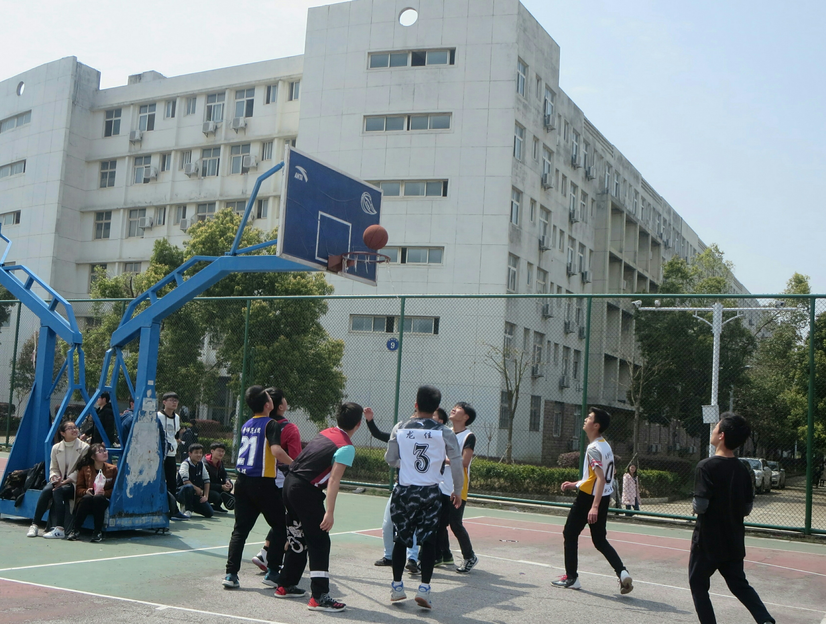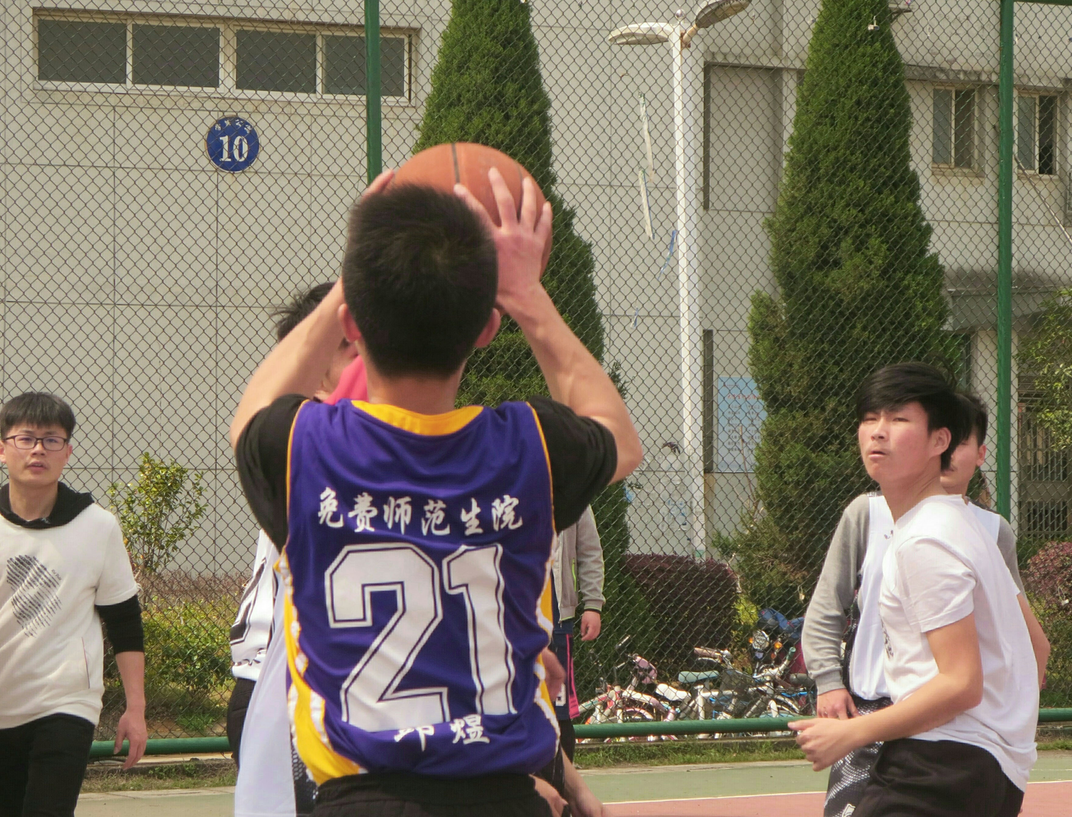 比赛开始前,操场的周围围满了前来观看的同学们,参加比赛的队员们也热情高涨,跃跃欲试。紧接着,激烈的篮球赛开始了。此次比赛分为两个赛程,分别是2017级M班对阵2017级数学班,以及2016级M班对阵2015级数学班。哨声响起,现场的气氛急剧攀升,比赛的双方很快就进入了角逐的状态。场下的啦啦队洋溢着青春的气息,呐喊助威的声音在篮球场的上空回旋。他们全力以赴,积极拼搏,展现风采。他们用多样的篮球技巧和精准的投篮为自己的队伍夺得了一分又一分,让此次篮球赛变得更加精彩。经过40分钟的激烈角逐,2017级数学班与2016级M班分别取得了这两场班级赛的冠军,赢得掌声不断。虽然其他两个班级在这次比赛中未获得最终的胜利,但他们“不抛弃,不放弃”的精神感染着现场的每一个人。