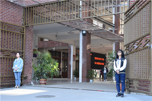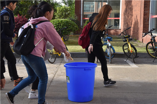 活动开展过程中,志愿者们站姿挺立,认真负责地在惟义楼各区域门口检查进教学楼的同学携带食品的情况,并在遇到违规者时,对其进行提醒与劝阻。活动结束后,志愿者们将各自所在区域的垃圾倒入垃圾车中并清洗垃圾桶,将清扫设施放归原位。