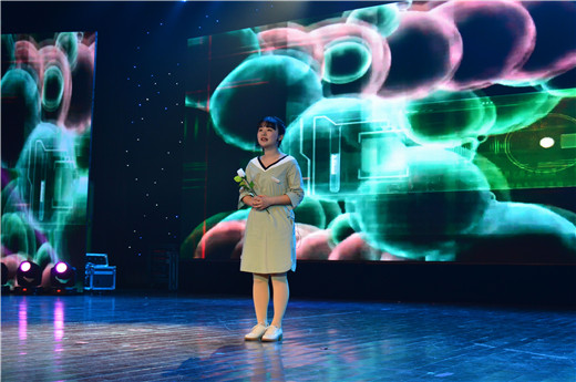 活动在优美的舞蹈中拉开序幕,一个个候选人的优秀个人演说节目令人眼花缭乱。你看,生命学院的况梦安同学上场了。简短的VCR,却包含着她待人时平易可亲、学习时努力积极、科研时专注认真以及参加活动获得的无数荣誉证书等不简单的经历。她每一个面,都令人敬佩。踏着VCR的音乐,况梦安同学上场了。平稳的步伐,清灵的嗓音,她不慌不忙的介绍自己,并向大家表演了一个有趣的魔术。一支普通的玫瑰花在她手中变化无常,精彩纷呈,赢得了阵阵掌声。随后她借魔术引出她的演讲主题“生命与健康”,“如果把大自然比作魔术师,那生命科学带给我们的便是魔术大揭秘”,况梦安同学将她与生物科学的故事娓娓道来。祖父与父亲患病的经历令她选择了生物,也令在场的评委老师与同学们感动无比。最后况梦安同学以个人展示93.71分,综合成绩95.94分的高分荣获“十佳大学生”荣誉。