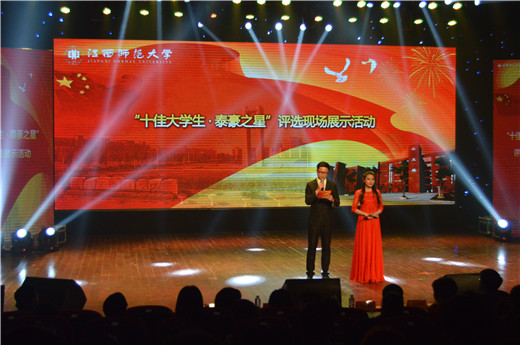 为了引导大学生在人生道路上培养自强、自信、自爱、自律的心理品质,鼓励大学生树立崇高的理想,培养高尚的情操、坚定的信念,激励学生奋勇拼搏、努力学习、勇于实践、敢于创新,培养学生关爱社会、服务社会的精神。4月15日晚上,江西师范大学在先骕楼实验剧场顺利举办2018年度“十佳大学生·泰豪之星”评选现场展示活动,参与此次活动的有学校领导、党办(校办)等各职能部门,十佳大学生候选人22人以及学生代表每学院25人到场参与。