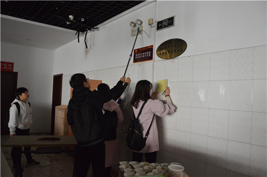 排查开始前,志愿者服务队成员及校青协志愿者到达排查地点集合,按照提前安排好的小组进行排查地点及范围的分配。排查活动主要针对各食堂的消火栓、灭火器、疏散指示灯、安全出口指示灯和应急灯等消防器械进行编号,并将存在问题的消防器械进行记录。在排查过程中,各小组队长带领小组成员在目标建筑中按逆时针顺序寻找需要检查的消防器械,并在途中教大家如何辨认器械是否完好,提醒大家检查时需要注意的问题,各成员都认真倾听并随时对消防器械进行排序记录,同学们分工合作,很快便将各个食堂的器械排查完毕。