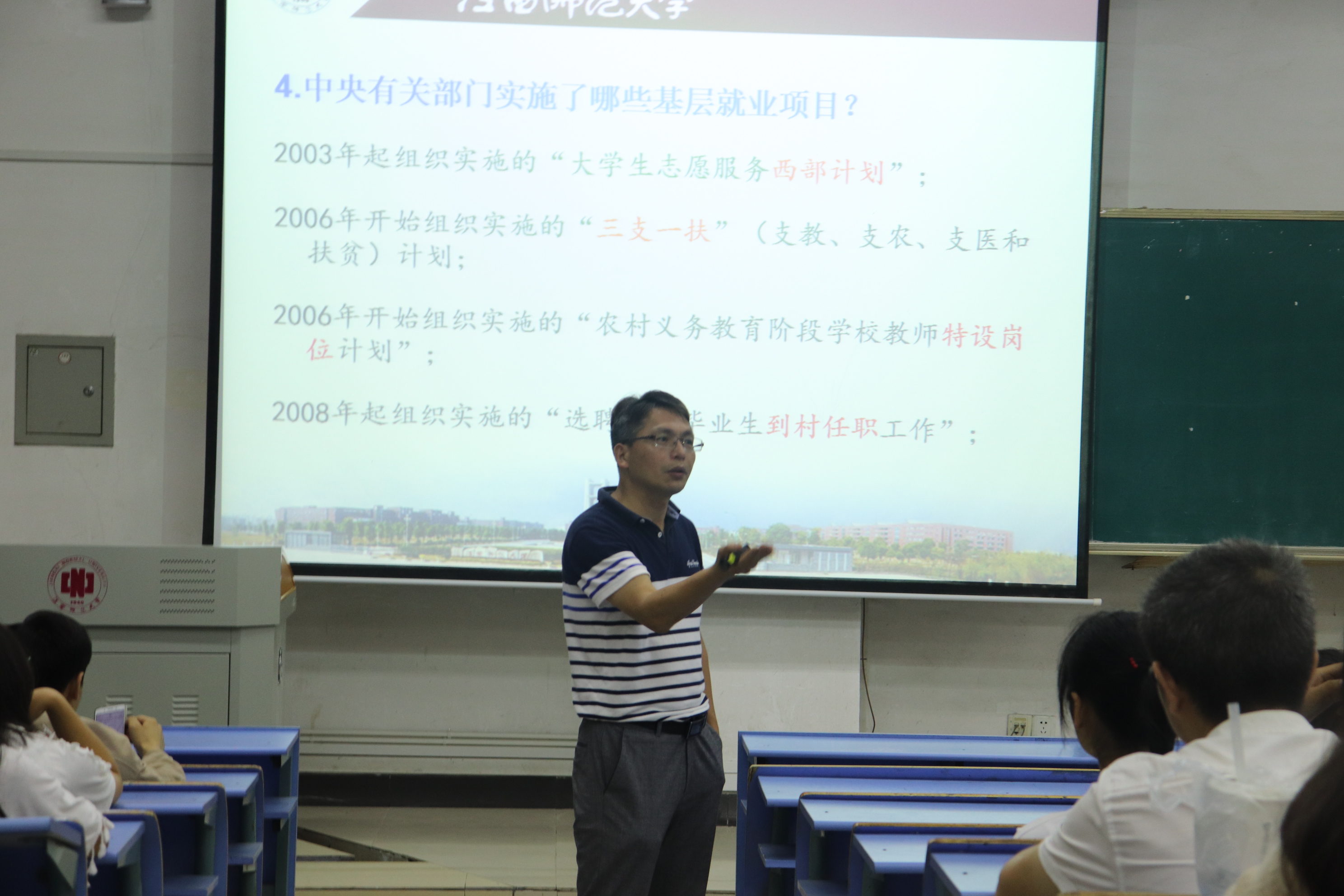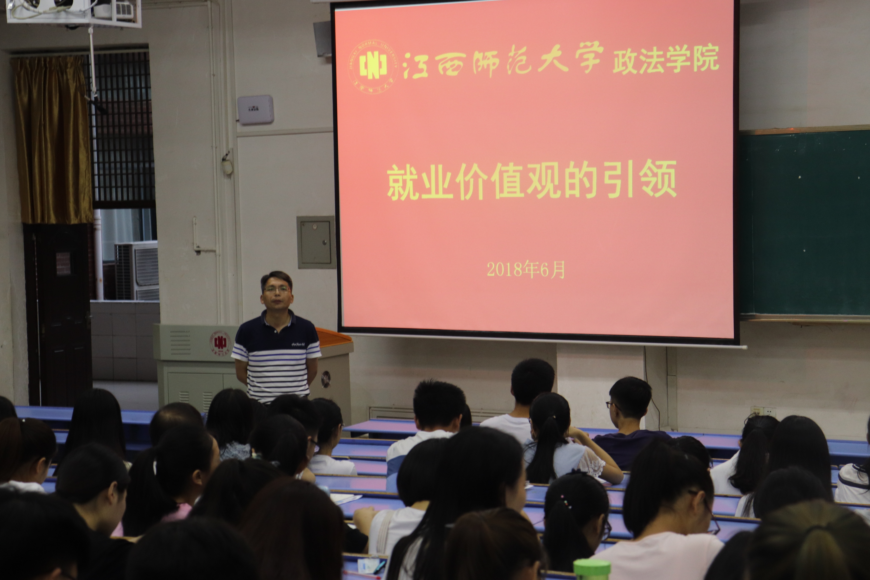 为了正确引导学生树立正确就业价值观和择业观,6月6日和6月8日晚7点,政法学院分别在惟义楼7302教室和7101教室为16级和17级全体本科生举办了以”就业价值观的引领”为主题的就业指导讲座。讲座由政法学院党委副书记刘延林老师主讲。