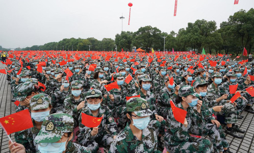 黄恩华作军训动员大会讲话。他指出,开展学生军训工作是国家法律赋予学校教育的一项重要任务,是全民国防教育的重要组成部分。按照上级常态化疫情防控的要求,学校高度重视今年的学生军训工作,成立了军训工作领导小组,采取军事化组训,开展严格、有序、安全的军训活动。他说,在学校党委的坚强领导,军训领导小组的靠前指挥,陆军步兵学院教官们的辛勤劳动,学校各方的协同合作和全体同学共同努力下,同学们一定会展示出师大人奋发进取、昂扬向上的精神面貌,以优异的军训成绩向学校交出一份出色的答卷。