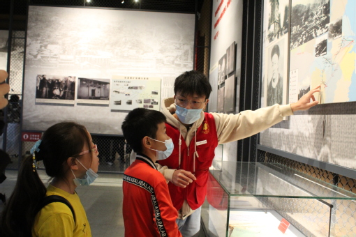到达安源路矿工人运动纪念馆后,队员们首先在馆前石碑处进行合影。接着,大家踏上“百步梯”入馆参观学习。从总平巷、八方井四十四号到夜校,从鹤嘴锄、煤油灯到教科书,从国画、泥塑到全真影像,一件件文物让队员们在感受到安源路矿工人运动的艰辛以及中国共产党的光辉历程的同时,也进一步领会了安源精神。在参观过程中,队员们还结合自身所学以及查阅的资料,积极向身边的游客进行讲解,向大家传递安源精神,展现师大学子风貌。
