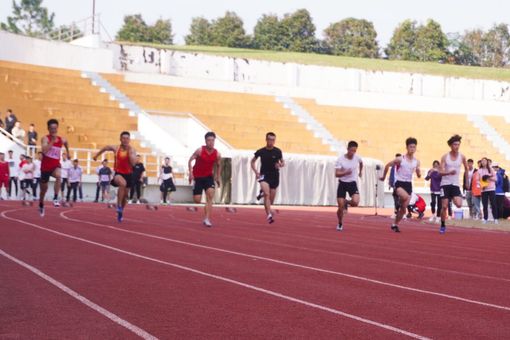 在运动员检录完毕陆续进场之后,比赛正式开始。运动员们站在各自的跑道上认真地为接下来的比赛做热身运动,随着枪声响起,运动员们如箭一般飞速向前冲刺,直线赛道上,决赛的八位运动员拼尽全力,精神抖擞,尽显运动风采,在最后时间中角逐前三,将体育精神彰显得淋漓尽致。观众席位的同学们纷纷挥舞着手中的红旗,大声为选手们加油助威,各学院鼓手们击打鼓面,啦啦队队员们用积极向上的舞蹈带来了更多掌声与尖叫,场上呼声此起彼伏。最终,来自政法学院的周志远同学以11秒96斩获了此次比赛的冠军。软件学院的刘凯同学和物理与通信电子学院的李文耀同学以12秒51和12秒61分别取得亚军与季军。