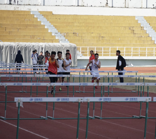 运动员们拉伸,高抬腿,增强身体的韧性以及下肢的力量感,为接下来的比赛做准备。在起点处热身的运动员们已经准备就绪,他们神情专注地等待着比赛开始。一声枪响,比赛拉开序幕。冷平朝第一个栏杆冲去,速度不减,跨越,落地,冲刺一气呵成。领先的冷平丝毫不敢懈怠,他保持着最好的状态直至冲过终点。100米跨栏比赛中凌王菲虽稍有落后,但她迅速调整好状态后冲向终点。