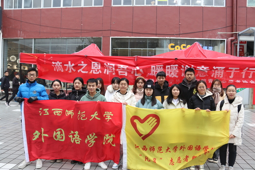 11月28日,外国语学院青年志愿者协会在二食堂门口开展了“滴水之恩润吾心,暖暖谢意涌于行”的主题活动。