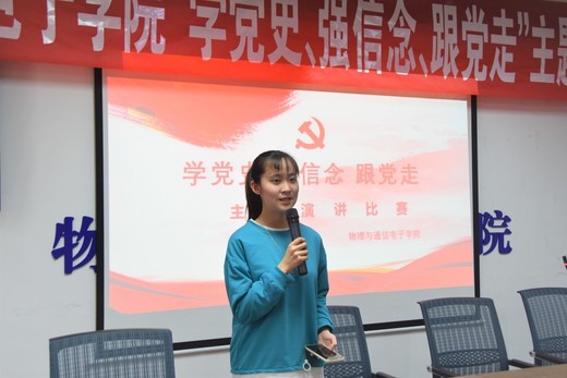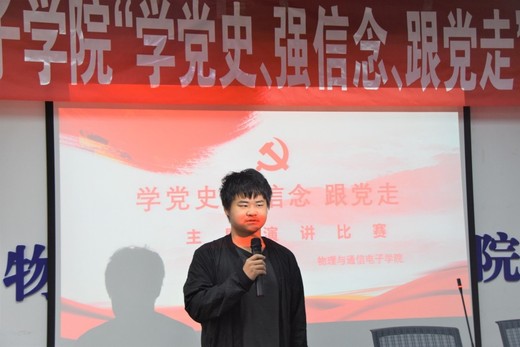 4月13日,物理与通信电子学院团委在实验大楼中206教室开展“学党史,强信念,跟党走”主题演讲比赛。比赛过程中,选手们紧扣主题,回顾了中国共产党的光辉历程,讲述了中国共产党成立一百年来的革命历史故事,歌颂了党领导人民在革命建设事业中取得的光辉成就。据悉,本次“学党史,强信念,跟党走”主题演讲比赛的顺利开展,深化了同学们对党史的认识,增强了同学们的爱国意识,也坚定了同学们为实现中华民族伟大复兴的中国梦而努力奋斗的决心。(文/图 物理与通信电子学院 李月夫 编辑/校团委新媒体运营中心 向筱宇)