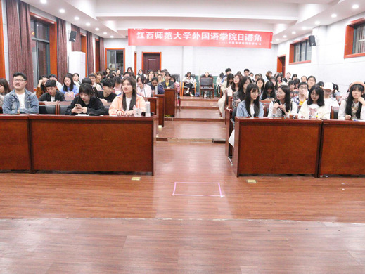 4月25日晚上7时,外国语学院在名达楼1415会议室举办了以“那些年我们追过的动漫”为主题的本学期首届日语角活动。此次活动由外国语学院团委学生会大学生学术实践中心承办,面向江西师范大学瑶湖校区全日制在校大学生。活动伊始,胡丹丹同学为现场观众倾情献唱了一曲《轻飘飘》。工作人员带领同学们穿梭于时空的纵贯线,求解“一休”的脑筋急转弯、角逐“真·灌篮高手”的词汇量比拼、重忆“名侦探柯南”的解密历程。据悉,此次日语角活动极具创新特色,也激发了同学们对于日语学习的兴趣。(文/图 外国语学院团委 占恋 编辑/校团委新媒体运营中心 董江翊)
