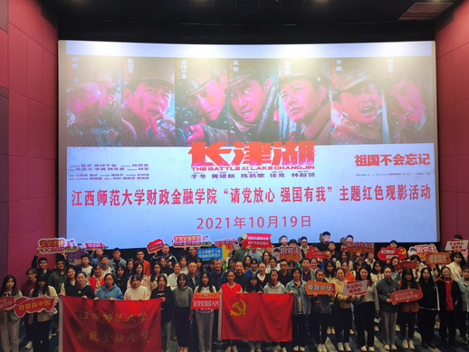 10月19日下午,财政经融学院在天虹电影院开展“请党放心,强国有我”红色主题影片《长津湖》观影活动。此次活动旨在深入开展党史学习教育,让同学们更好地了解抗美援朝历史,激发爱国主义思想。学院全体领导,部分学生代表积极参加。影片主要讲述了中国抗美援朝志愿军对美国军队的英勇作战。随着剧情发展,同学们也时而热血沸腾,时而潸然泪下。电影结束后,同学们的心情也久久不能平复。陈靖微同学表示:“我们今天的和平盛世离不开革命先烈的奋斗,当我们身处在每一个幸福的时刻,都不应该忘记那群最可爱的人。”“山河已无恙,吾辈当自强”。在本次党史学习教育中,通过观看影片,同学们深刻认识到新中国建立之艰辛,体悟到中国军人之坚韧,领会到抗美援朝精神,在时代中清晰目标,担当责任,做新时代的新青年!(文/图 财政经融学院团委 编辑/校团委新媒体运营中心 方洁钰 孙博凡)