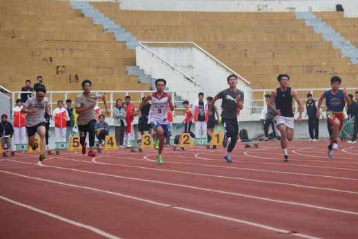 赛前,运动健儿们精神饱满、神采飞扬,在赛场的空地上做着热身运动。站在七号赛道的彭骋宇同学目视前方、调整呼吸,为起跑做准备。随着信号枪一声枪响,彭骋宇如离弦之箭一般,飞速冲出起跑线。看台观众的目光紧紧跟随他的身影,在台上一起为他加油呐喊。在最后的冲刺中,彭骋宇加快速度,甩开其它选手,奋力冲向终点。在本次比赛中,彭骋宇同学以12秒73取得了第六名的好成绩。他表示:“100米赛道上强者如云,是同学们的支持,让我拥有了一往无前的自信和勇气。”