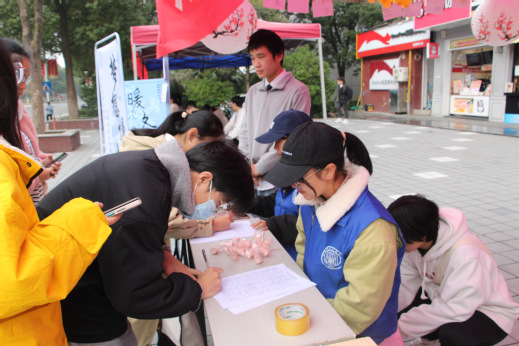 活动开展前,青鸟志愿者服务队广泛开展志愿者招募工作,精心挑选信封信纸,耐心制作投递信箱。小青鸟们秉持着奉献、友爱、互助、进步的志愿者精神认真工作。摆点处前,志愿者们手持活动宣传单向来往同学派发,并耐心讲解活动流程,积极引导同学们参与活动。从“云中谁寄锦书来”到“鱼传尺素书”,看似简单朴实的信笺蕴涵着写信人其意无穷的脉脉情思。信件投入信箱,梦想慢邮便将这份思绪珍存发酵,待来年送至收信人手中时,又是墨香荡漾,回忆悠长。