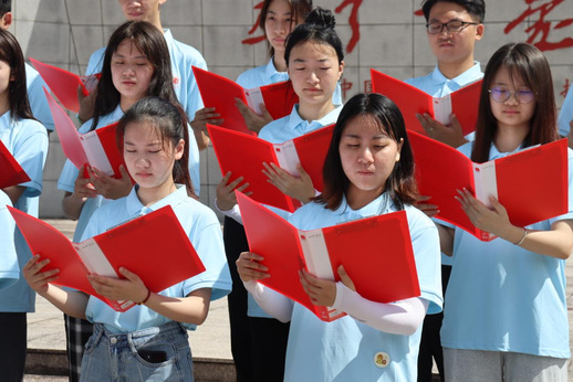 图1、图2为财政金融学院志愿者们一起诵读爱国经典。