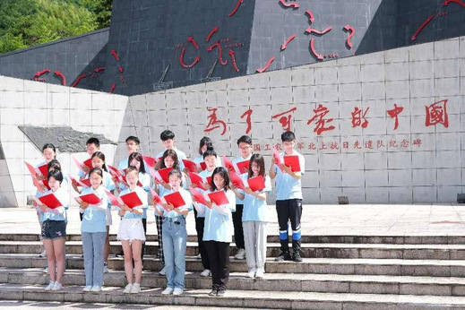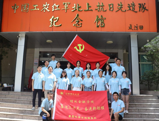图7为志愿者们在中国工农红军北上抗日先遣队纪念馆门口合影留念。(文/图 财政金融学院 编辑/校团委新媒体运营中心 张鑫)