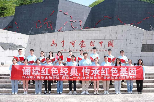 江西师范大学财政金融学院志愿服务队于7月2日前往江西省上饶市怀玉山开展“爱国经典朗诵”活动,他们用慷慨激昂、精神饱满的朗诵,倾诉着对祖国母亲、对中国共产党的感激和热爱之情。此次活动,不仅让青年在诵读红色经典中感受到激情与红色魅力,同时进一步激发了青少年的爱国热情。朗读结束后,志愿者们共同参观了当地的纪念馆。