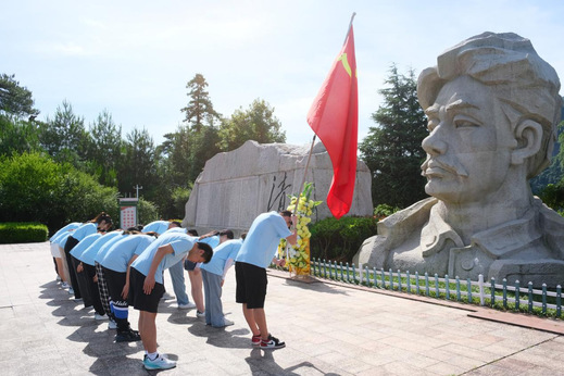 图为志愿者们向方志敏烈士鞠躬。