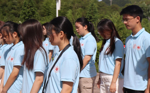 图为志愿者们在方志敏雕像前默哀缅怀。