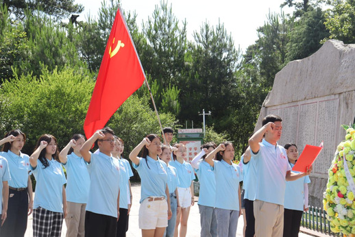 图为带队老师带领志愿者们重温入党誓词。