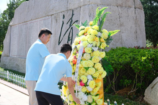 图为志愿者们到达清贫园方志敏烈士雕像前。