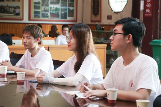 图为实践服务队队员认真聆听南昌市老市长李豆罗讲述西湖李家农耕文化未来的发展和创新。