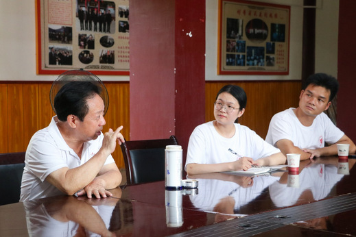 图为南昌市李豆罗老市长为实践服务队队员讲述西湖李家农耕文化建设途中的困难。
