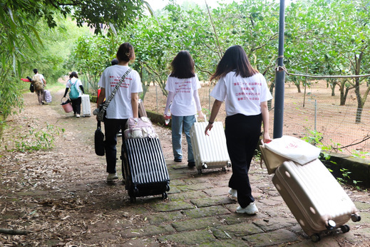 图为实践服务队队员提行李和物资前往住宿点。