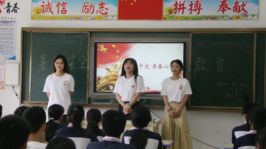 迎清风徐徐,寻青春之声。7月2日,我校“星火寻梦”暑期三下乡社会实践队先后赴信丰八中和信丰县工业园学校,开展“喜迎二十大,青春心向党”主题红色公开课。老师与同学们欢聚一堂,回忆初中时光,唱响青春旋律。在学生们毕业之际,实践队队员宣讲红色文化,演绎红色故事,鼓励全体同学坚定信仰,勤奋学习,为祖国的发展贡献出自己的青春力量。