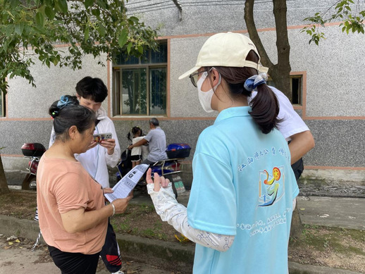 图为志愿者们在街道上向居民进行宣传。