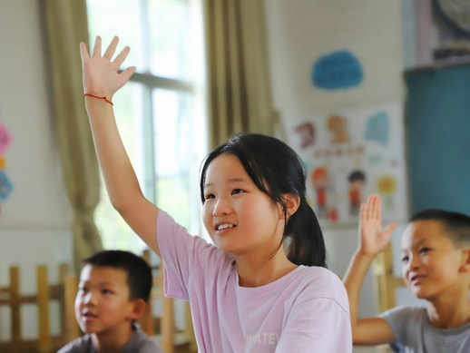 图为辅导班学生踊跃举手发言。